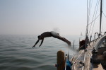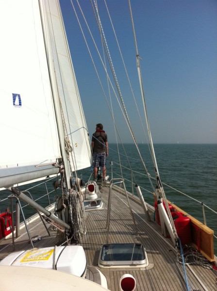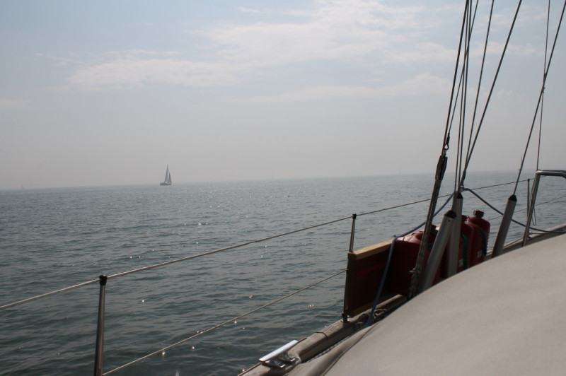 Ijsselmeer hinaus gesegelt. Da auch Ankermanöver geübt werden mussten, nutzten wir die Gelegenheit zur Abkühlung beim schwimmen. Der Wind kam angenehm auch Süd, schlief zum Abend hin aber leider ein,