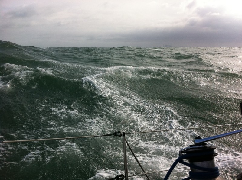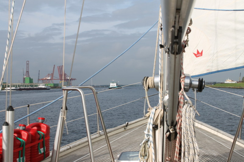 Am nächsten Morgen starteten wir wieder. Der Wind hatte deutlich zugenommen und auch die Welle war höher. Dadurch, dass wir natürlich wieder hoch am Wind waren, war es ein recht ruppiger Segeltag. Wir kamen jedoch gut damit klar. Leider ist die Reffleinenführung an der Rollgenua verloren gegangen. Da der Wind immer stärker wurde und für die Nacht bis zu 45 Knoten Wind angesagt waren, sind wir am späten Nachmittag in den geschützten Hafen von Stellendam eingelaufen. Hier konnten wir den Sturm gut abwettern.