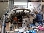Am Montag ist das Schiff erstmal in die Halle geschoben worden, um die Arbeiten besser vorantreiben zu können. Zudem war wirklich schlechtes Wetter und es gab in regelmäßigen Abständen einen Sturzregen. Das hat uns dann aber nicht mehr viel anhaben können! Ansonsten ging es eigentlich ähnlich weiter wie in den Wochen zuvor. Leitungen, Schläuche und Kabel verlegen etc.! Die Installation der Navigationsinstrumente ist jetzt nahezu abgeschlossen. Wir warten nur noch auf einen Stecker der angeblich Montag geliefert werden soll, aber da trauen wir den Versprechen so langsam nicht mehr. Heute sollte auch die Schraube kommen...heute heißt es, sie kommt am Dienstag! Also müssen wir da sehr flexibel sein. Gestern ist dann auch endlich unsere Kurz- und Grenzwellenfunkanlage mit Pactor-Modem und Tuner angekommen. Der Einbau wird dann nächste Woche vorgenommen werden, da dieser sehr aufwendig ist. Weiterhin ist gestern die Gasanlage zu unserer Zufriedenheit auf den aktuellen Stand gebracht worden. Auch hier warten wir natürlich noch auf ein kleines Ersatzteil (Druckregler). Ansonsten gehen wir aber immer frohen Mutes an die verschiedenen Aufgaben und Reparaturen. Das Wochenende werden wir in Iserlohn verbringen und dort Lackierarbeiten und eine kleine "Materialschlacht" vorantreiben!